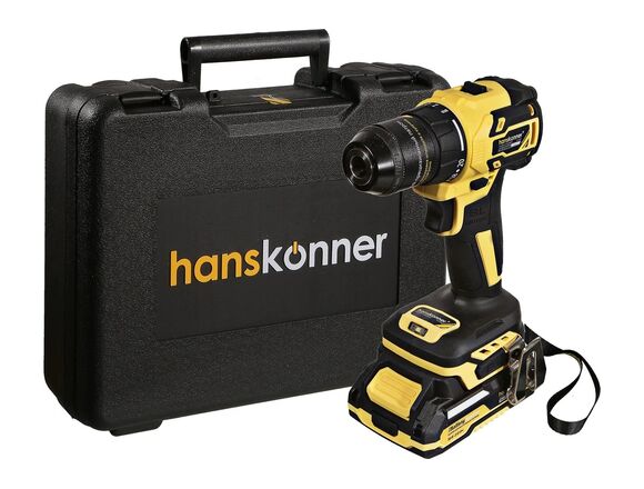 Шуруповерт Б/Щ 1BatterySystem HANSKONNER 18В 60Нм 2АКБ*2Ач, 13мм, фонарь USB LED КЕЙС (1/4)