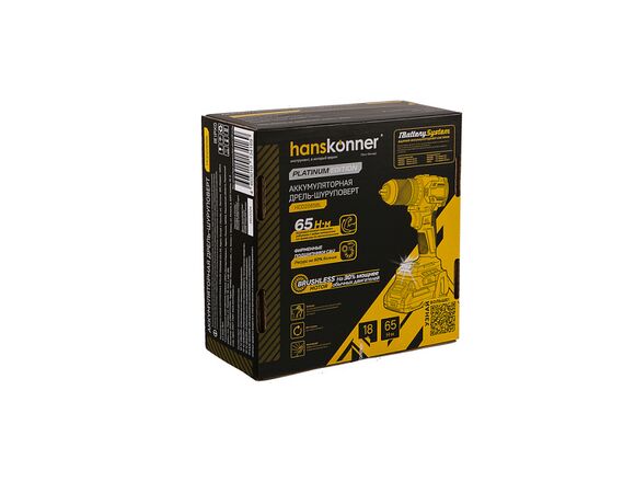 Шуруповерт Б/Щ 1BatterySystem HANSKONNER PLATINUM 18В 65Нм БЗП 13мм без АКБ и ЗУ (1/5)