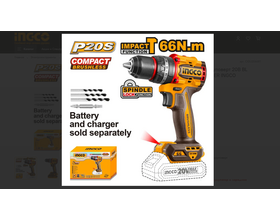 Шуруповерт Б/Щ УДАРНЫЙ "20V MAX" INGCO INDUSTRIAL 66Нм, БЗП металл 13мм, без АКБ/ЗУ (1/5)