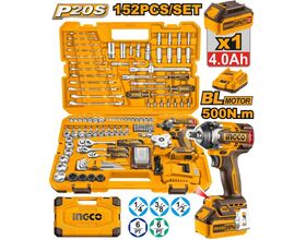 Трещотка "20V MAX" INGCO 3/8", 65Нм, 3 головки, 1АКБ*2Ач+ЗУ, КЕЙС (10/40)