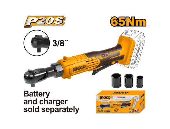 Трещотка "20V MAX" INGCO 3/8", 65Нм, 3 головки, без АКБ/ЗУ (1/8)
