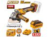 УШМ Б/Щ "20V MAX INGCO INDUSTRIAL 115/125мм ( 900Вт / 3 скорости ), 1АКБ*4Ач+ЗУ, 5 дисков (1/6)