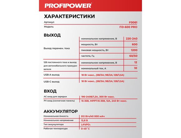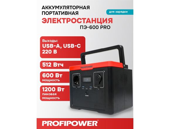 Аккумуляторная портативная электростанция PROFIPOWER ПЭ-600PRO 600Вт