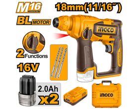 Перфоратор Б/Щ "M16" INGCO INDUSTRIAL 16В, 1,8Дж, 2АКБ*2Ач+ЗУ, буры, КЕЙС (1/4)