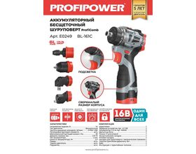 Шуруповерт Б/Щ Комби PROFIPOWER 5 в 1 16В 40Нм 2АКБ*2Ач + ЗУ, КЕЙС (1/5)
