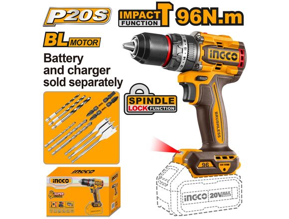 Шуруповерт Б/Щ УДАРНЫЙ "20V MAX" INGCO INDUSTRIAL 96Нм 13мм МЕТАЛЛ без АКБ и ЗУ(1/5)