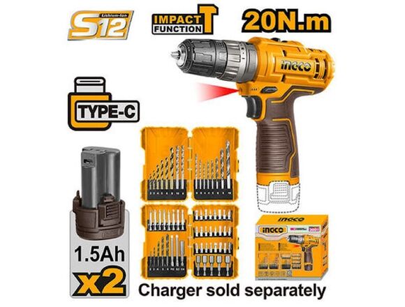 Шуруповерт УДАРНЫЙ INGCO "АКЦИЯ" 12В + КЕЙС БИТЫ + КЕЙС СВЕРЛА, 2АКБ+ЗУ
