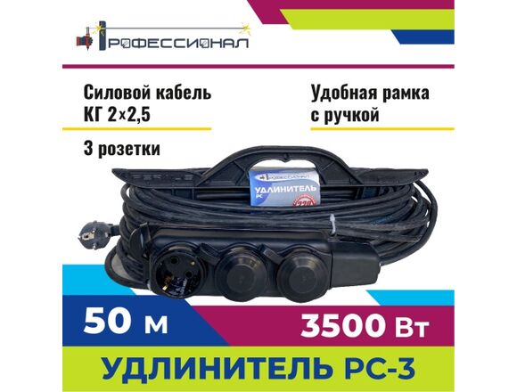 Удлинитель РС-3 ПРОФЕССИОНАЛ КГ 2*2,5 16А 50м