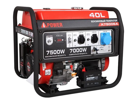A-iPower A7500EA, бензиновый генератор 7 квт, оснащен автоматами защиты, которые при перегрузке предотвратят выход из строя и остановят генератор. Также система защиты предотвратит запуск