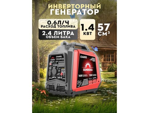 Генератор бензиновый ИНВЕРТОРНЫЙ SUNREKA 1,2/1,4кВт 220в ручной стартер МЕДЬ G1400iS