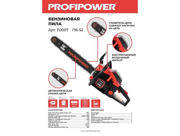 Бензопила PROFIPOWER ПБ-52 (45см 72зв 1.5мм 0,325 ) (1/2)