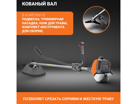 Бензокоса Oleo-Mac Sparta 25 Eco Aluminium — легкий и удобный в работе бензиновый триммер для бытового использования с большим запасом прочности. В комплекте есть весь необходимый режущий инструмент для кошения как мягкой, так и достаточно жесткой травы — леска толщиной 2,4 мм и металлический нож с 3 лопастями.