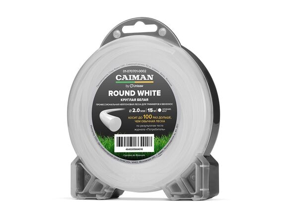 Леска для триммера ПРОФ CAIMAN Round White by Unisaw круглая 2,0 мм, 15 м