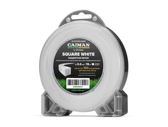 Леска для триммера ПРОФ CAIMAN Square White by Unisaw квадрат 3,0 мм, 15 м