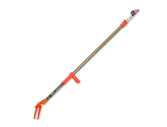 Профессиональный ручной секатор дальней досягаемости CAIMAN CN-128 – это инструмент 3 в 1: с его помощью можно обрезать тонкие ветви, собирать плоды садовых культур, отпиливать ветви большого диаметра (в комплекте имеется ножовка). Телескопическая штанга из легкого алюминиевого сплава может регулировать длину секатора от 1,8 до 3 м и позволяет работать в труднодоступных местах, в том числе на высоте прямо с земли, не используя лестницы и другие приспособления. На режущую головку можно установить ножовку с тройной скошенной кромкой для пиления толстых ветвей.