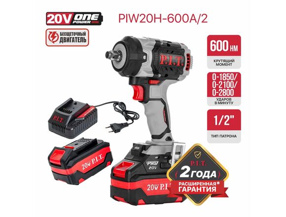 Гайковерт ударный OnePower Б/Щ P.I.T 20В 600Нм 1/2" 2АКБ*4АЧ + ЗУ, КЕЙС (1/4)
