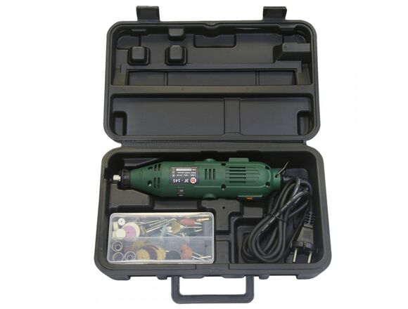 Гравировальный набор Калибр ЭГ-145 00000036307 - электроприбор для непродолжительных бытовых работ и комплект принадлежностей. Этот инструмент способен выполнять широкий спектр работ: резка, шлифовка, зачистка, гравировка изделий из металла, стекла, керамики. Оснащен двигателем 145 Вт, который для большей безопасности имеет двойную изоляцию. Гравёр рассчитан на повторно-кратковременный режим работы (S3) с номинальным периодом времени: работа/перерыв – 20 мин/5 мин.