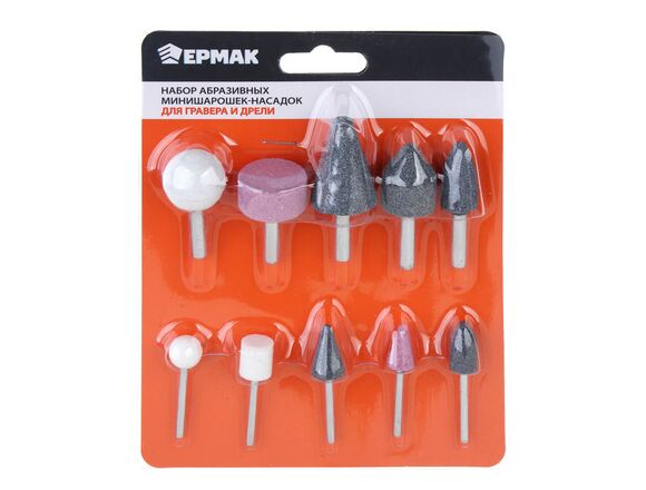 Набор шарошек абразивных ЕРМАК для гравера и дрели, хвостовик d 3мм/6мм, 10 пре