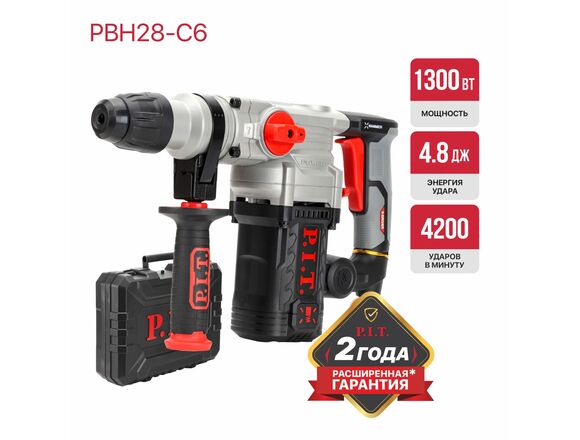 Перфоратор вертикальный SDS+ P.I.T. 1,3кВт 4,8 Дж 3реж, Ø28мм, 0-900об/мин (1/4)