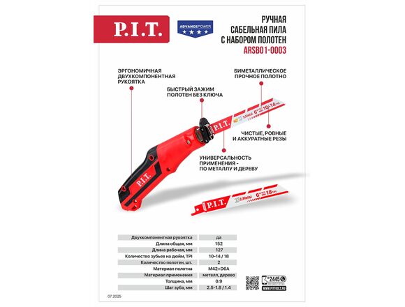 Ручная сабельная пила P.I.T. ADVANCE 152мм (с набором дер.1 шт, мет.1 шт)