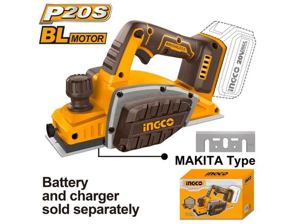Рубанок Б/Щ "20V MAX" INGCO INDUSTRIAL 82мм 14000об/мин глубина 0-2мм (1/4)