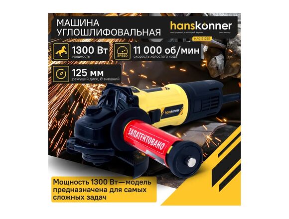 УШМ HANSKONNER 125мм, 1300Вт 11000об/мин, КОНСТАНТНАЯ эл-ка, ЧЕРТИЛКА