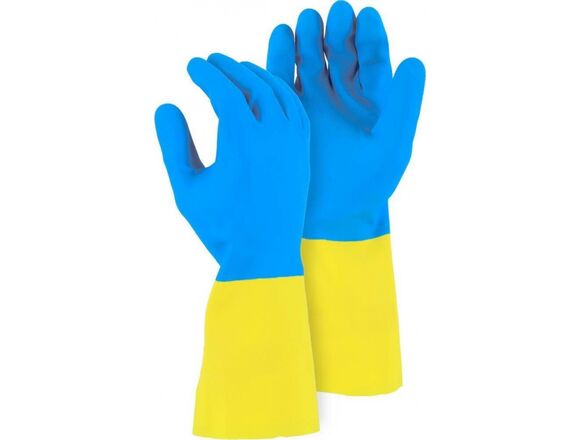 Перчатки KOMFI хозяйственные латексные БИКОЛОР, L, бежевый+бирюзовый, 2 шт (12/144)