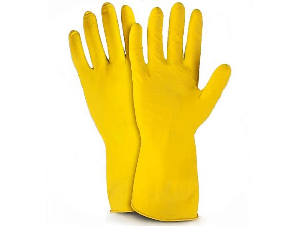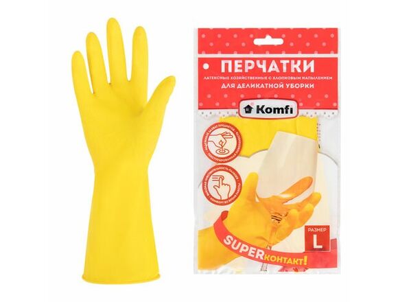 Перчатки KOMFI хозяйственные латексные"Для деликатной уборки" с х/б напылением L желтые (240)