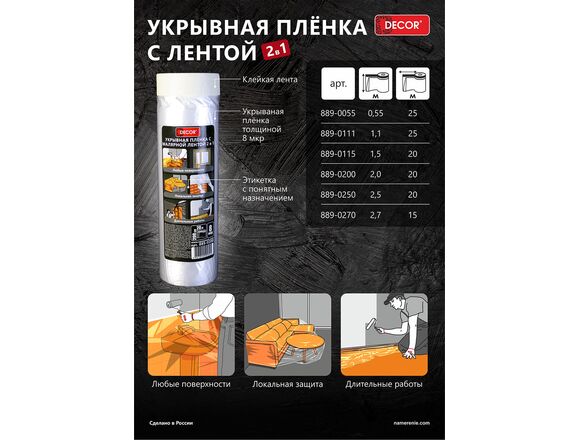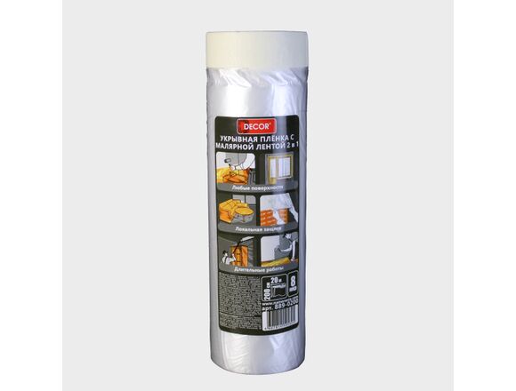 Пленка укрывная защитная с малярной лентой DЕCOR 1,1 м х 25 м, 8 мкр (20шт/100шт)