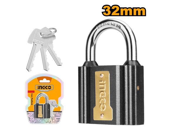 Замок навесной INGCO 32мм, 3ключа, механизм латунь (12/120)