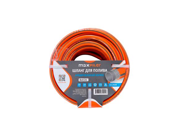 Шланг поливочный армированный MAXPILER 50м, 1/2", 3 слоя, 8 бар, 11.8х2.0 мм, ПВХ)