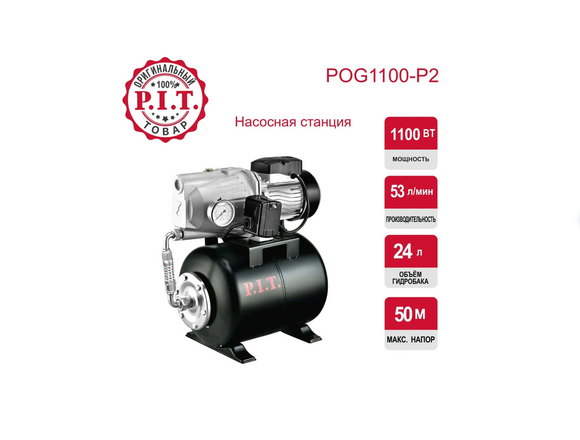 Насосная станция P.I.T. 1100Вт, напор 50м, бак 24л, произв-ть 46л/мин,чугун,1/1