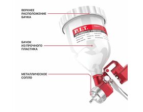 Краскопульт пневматический P.I.T. верхний бачок 600мл, сопло 1,4мм, 240л/мин (краска 210мл/мин),1/20