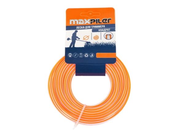 Леска для триммера MAXPILER 2.4мм*15м, КВАДРАТ (БЕЛО-ОРАНЖЕВАЯ) картон