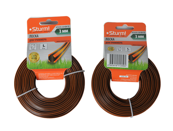 Леска для триммера ПРОФИ STURM 3,0мм*15м УСИЛЕННЫЙ КВАДРАТ ОРАНЖ/ЧЁРНАЯ картон (10/120)