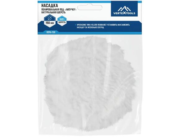Насадка полировальная "ПОД ЛИПУЧКУ" VERTEX 150мм НАТУРАЛЬНАЯ ШЕРСТЬ