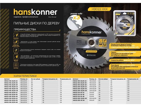 Диск пильный по дереву HANSKONNER PROFESSIONAL 200*32/30мм, 36 зубьев (25/50)
