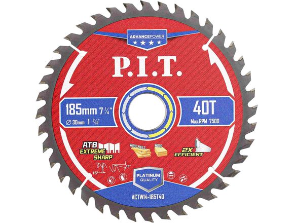 Диск пильный по дереву P.I.T. ADVANCE 185*30*1,4мм, 40T Carbide, зуб ATB 15° б/у дер с гвоздями