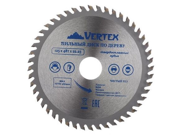 Пильный диск по дереву Vertextools 160-48-22 предназначен для выполнения точных продольных и поперечных чистовых пропилов в мягкой и твердой древесине, прессованной слоистой древесине, фанере, ламинате и ДСП. Напаянные индуктивным способом твердосплавные переменные зубья с агрессивным углом резания обеспечивают одновременно быстрое и точное пиление. Чистота распила зависит от количества зубьев и расстояния между ними. Чем больше зубья, тем чище распил. Основа выполнена из углеродистой стали, напайки на зубах из карбидно-вольфрамового сплава (победита).