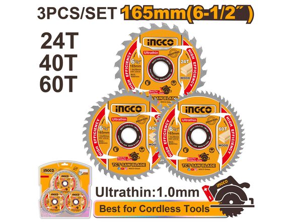 Диск пильный по дереву INGCO INDUSTRIAL 3шт УЛЬТРАТОНКИЕ 165*20/16*1мм, 24T/40T/60T (10/30)