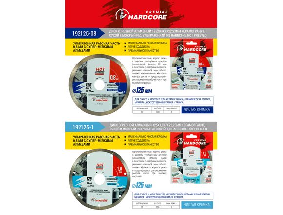 Диск алмазный Сплошной HARDCORE PREMIAL УЛЬТРАТОНКИЙ 125*0,8мм,керамогранит (1/10)