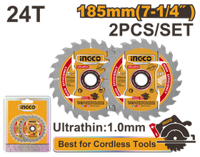 Диск пильный по дереву INGCO INDUSTRIAL 2шт УЛЬТРАТОНКИЕ 185*20/16*1мм, 24T (10/50)