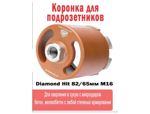 Коронка алмазная АДЕЛЬ M16 Ø82*65мм DH-DE400 R 7LSP с пылеудалением