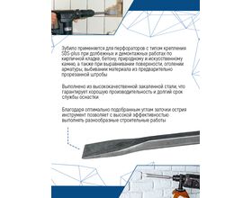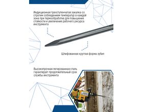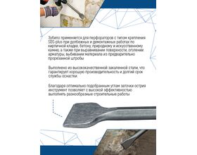 Зубило по бетону пикообразное KUBIS SDS-Plus 250мм (толщина 14мм)