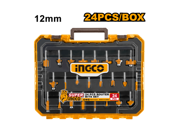 Набор фрез INGCO 24шт хв 12мм КЕЙС (10/40)