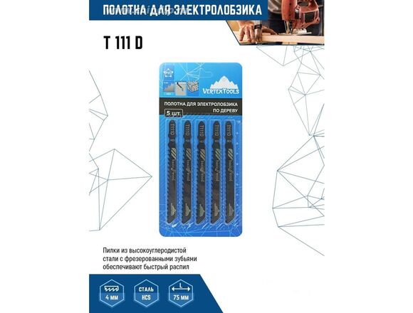 Пилки для лобзика VERTEX T111D (5шт)(10/100/400)