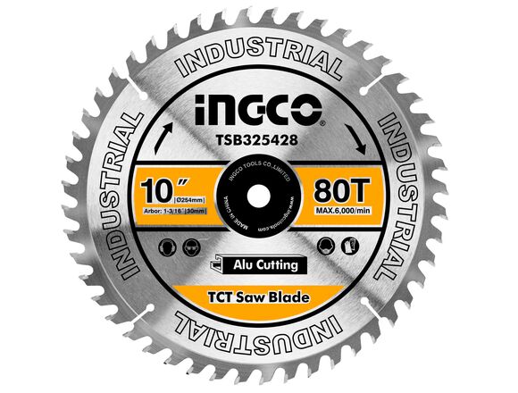 Пильный диск по алюминию 254 мм INGCO TSB325428 INDUSTRIAL предназначен для резки алюминия с помощью пильного станка или торцовочной пилы. 80 зубьев. Внешний диаметр: 254 мм. Посадочное отверстие 30 мм. Редукционное кольцо на 16 и 25,4 мм. Подходит для торцовочной пилы модели INGCO BM2S18004.