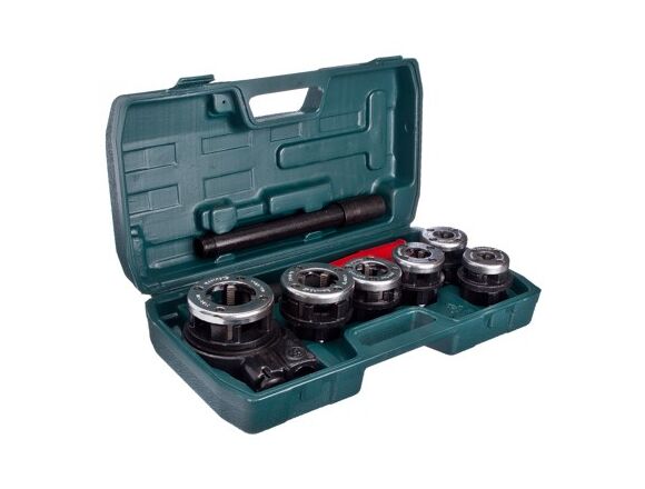 Набор клуппов ЕРМАК КТ-9 9 предметов 657-007 используется для работы с трубами при монтаже отопительных и прочих систем. Поставляется в прочном кейсе из пластика. Для простоты работы есть удлинитель и удобная рукоятка, которая обеспечивает равномерное распределение усилия. Инструменты выполнены из качественной нержавеющей стали, устойчивой к нагрузкам, благодаря чему эффективно справляются со своей функцией без потери заточки.