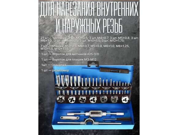 Набор плашек и метчиков GOODKING 32пр М3-М12 вороток/резьбомер/отвертка