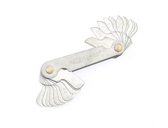 Резьбомер Дело Техники 239010 используется для определения шага метрической резьбы. Приспособление представляет собой набор шаблонов, в котором каждому значению резьбы соответствует свой шаблон. Совмещая шаблон с профилем резьбы определяется ее шаг. Каждый резьбомер имеет 24 щупа-эталона.